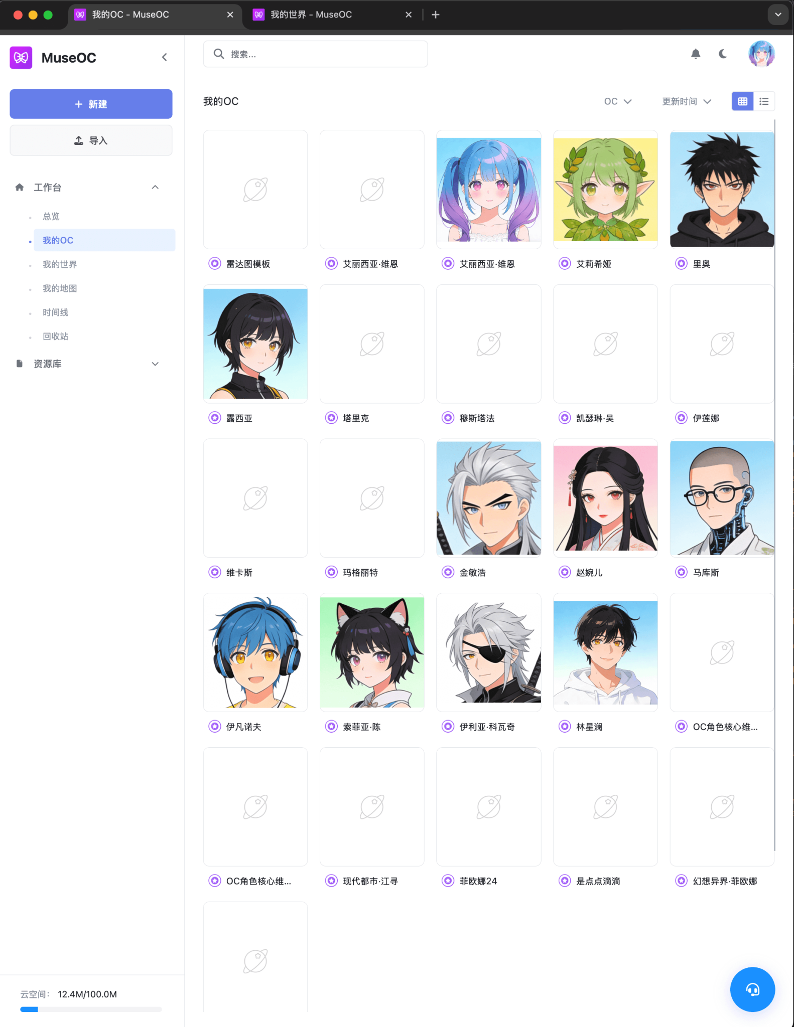自己的所有OC设定在工作台中有体现,推荐设置封面头像,方便查阅。